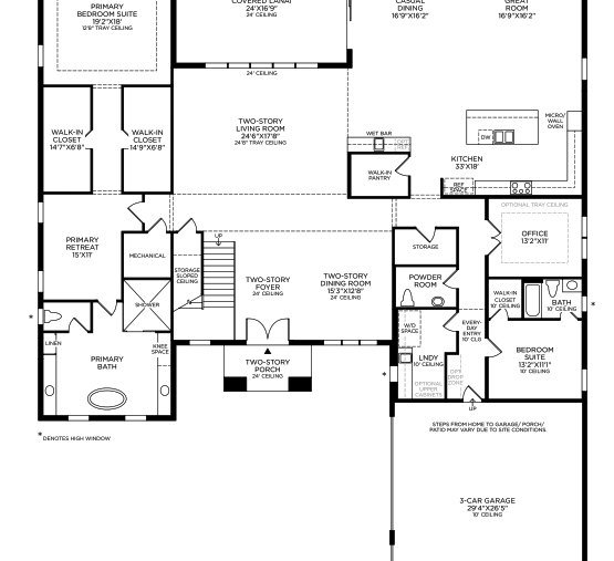 The Montech's impressive two-story covered entry flows into the two-story main indoor and outdoor living areas, revealing the lovely foyer, dining room, living room with coffered ceiling, and desirable lanai. The well-appointed kitchen overlooks a bright casual dining area, and is enhanced by a large center island with breakfast bar, ample counter and cabinet space, and huge walk-in pantry. The palatial primary bedroom suite is highlighted by a coffered ceiling, relaxing retreat, dual walk-in closets, and deluxe primary bath with dual vanities, luxe shower, and private water closet. An additional primary bedroom suite with walk-in closet and deluxe bath overlooks a generous loft. Secondary bedrooms feature walk-in closets, two with private bath, one with shared hall bath. Additional highlights are a secluded office; first floor bedroom suite; convenient powder room and everyday entry; and centrally located laundry.